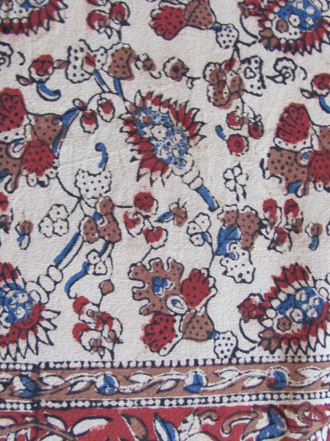 Bedspread/ gran foulard. also to be used as tablecloth or picnic cloth. Hand printed with wooden blocks on very nice good quality thick cotton. Responsibly printed with respect for people and planet. Each piece is a work of art. Measures at least 220 X 260 cm. Textile from Sanganeer(Jaipur) India, vegetable dyed and thus no chemicals are used. Makes a great yoga cloth.